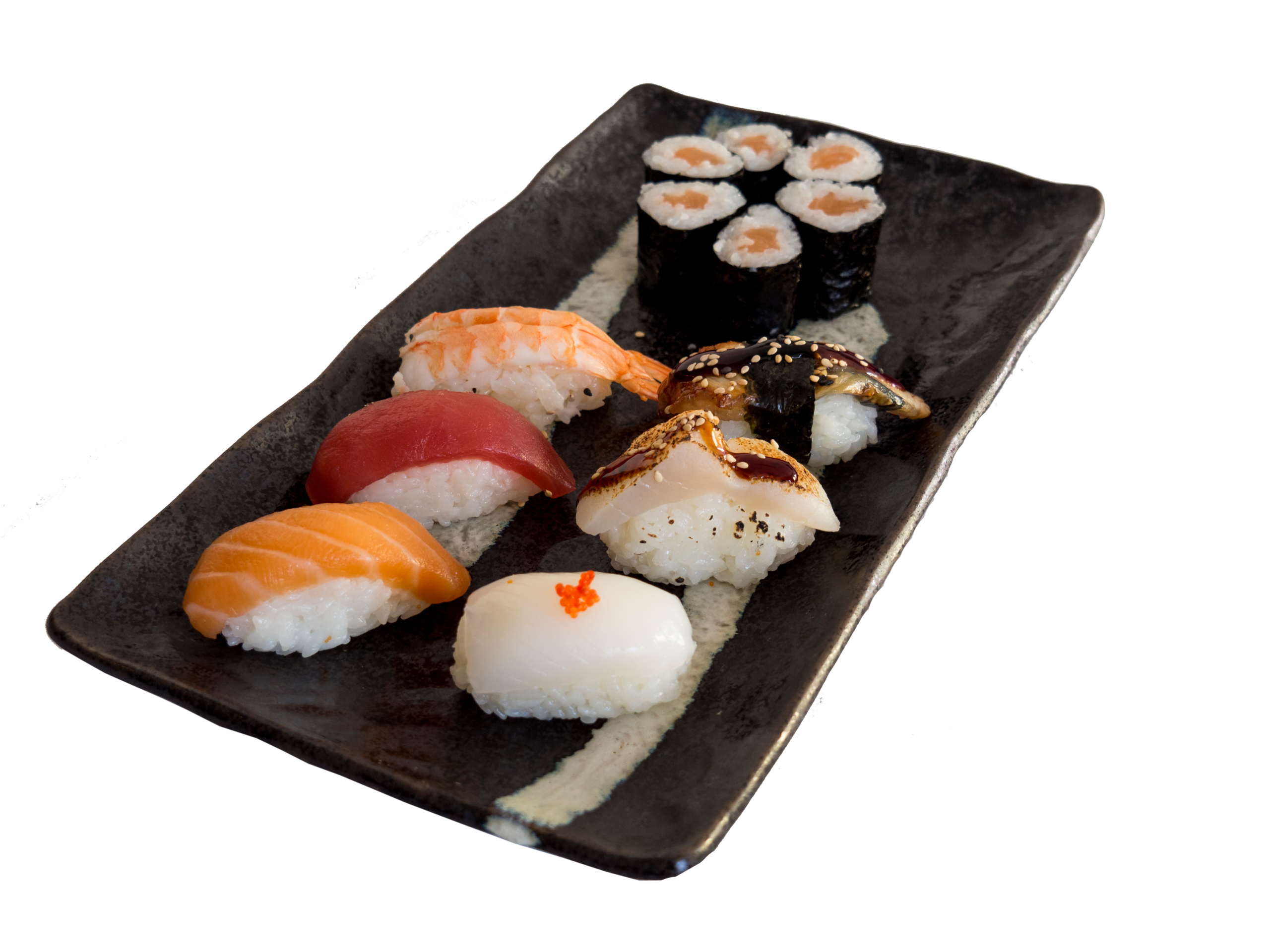 6 x verschiedene Nigiri mit Maguro, Shake, Ebi, Unagi, Ika und Hotate