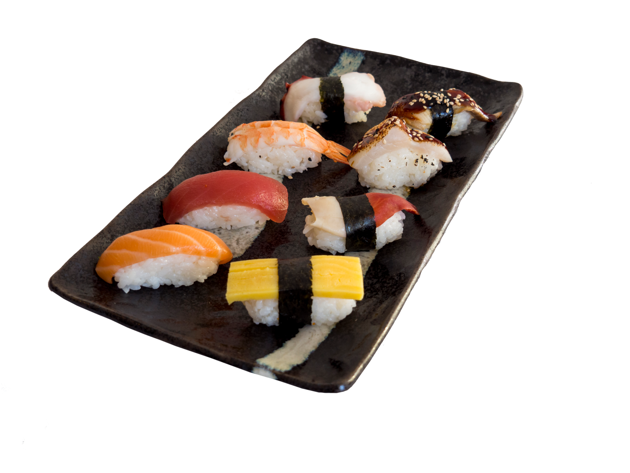 Maguro, Shake, Ebi, Unagi, Hokkigi, Tako und Hotate