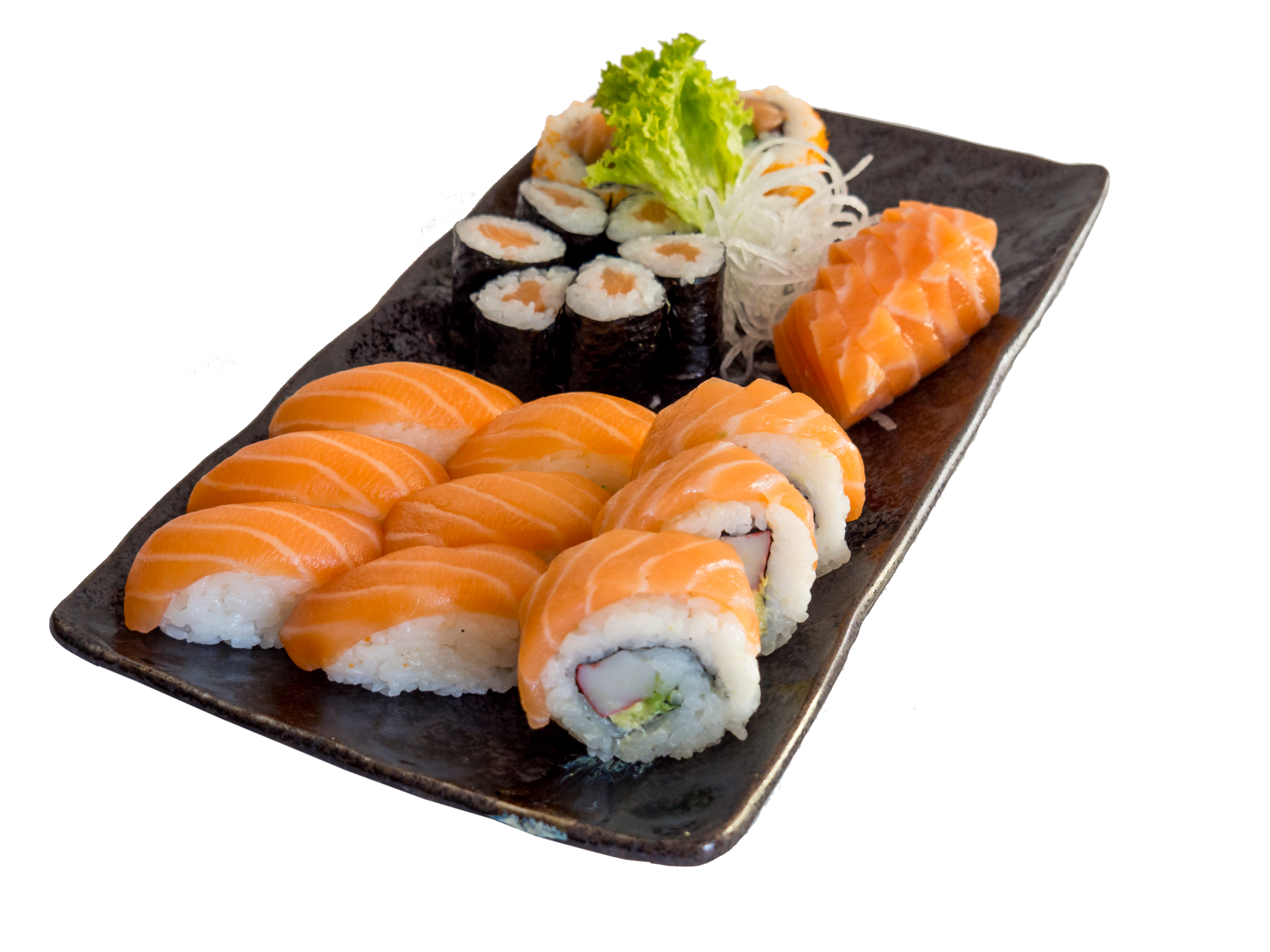(Mi. 28,90 €) 6 x Shake Maki 6 x Shake Nigiri 2 x Inside-Out mit Lachs 2 x Dora Roll 6 x Shake Sashimi