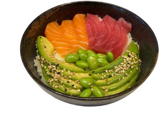 Lachs, Thunfisch , Avo, Edamame, Spicy Mayo