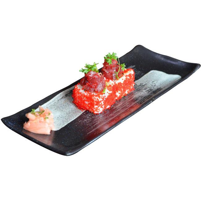 mit Surimi, Avo, Thunfischtatar und Fischrogen